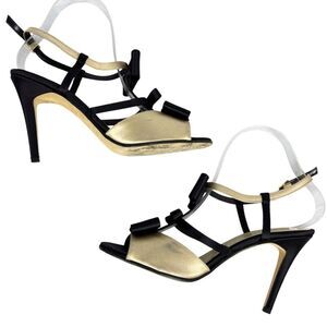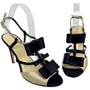 Kate Spade Satin T-Strap Gold and Black Bow Strappy Sandal Size US 8 B Stiletto