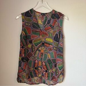 Kate Spade Saturday 100% Silk Colorful Geometric Tank Top Size XS