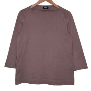 Kate Spade Saturday boat neck minimalist neutral brown 3/4 sleeve top sweater size L.