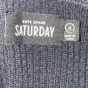 Kate Spade Saturday Cardigan Small Black Blue Ribbed Knit Linen Cotton Button Up
