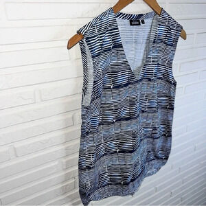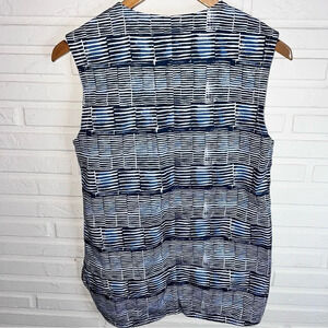 Kate Spade Saturday Cotton Navy Blue and White Sleeveless Shirt, Size Small