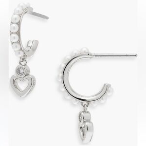 Kate Spade Saturday Imitation Pearl Huggie Hoop Earrings in Cream/ Silver NWT