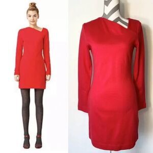 Kate Spade Saturday Slant Neck Dress Red Small Long Sleeve Sheath