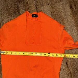 Has minor blemish on the bottom of the neckline. I tried to capture it in the photo but I’m not sure it can be seen. Very unnoticeable and will likely be treated out.