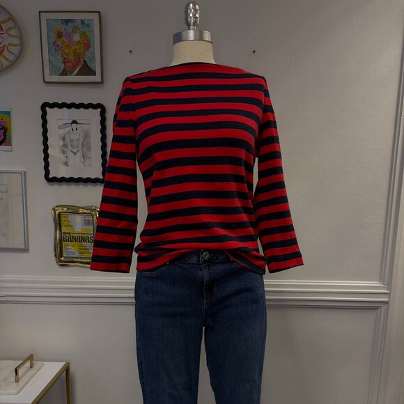 Kate Spade Saturday Striped Stretch Knit Pullover Coastal French Girl Timeless