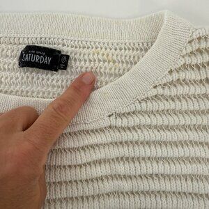 Kate Spade Saturday White Woven Knit Short Sleeve Boxy Crew Neck Boxy Sweater