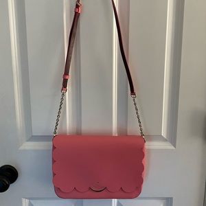 Very cute pink, scalloped crossbody with magnetic clasp.