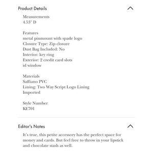 Fresh, fun, and functional — this Kate Spade Schuyler Small Card Holder Wristlet in a soft pink finish is the perfect everyday accessory. Compact in size but big on style, it features multiple card slots, a secure zip closure, and a wrist strap for easy carrying. Whether you’re running errands or heading out for the evening, this piece keeps your essentials organized in chic fashion.