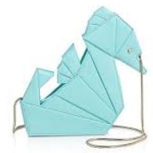 Rare seahorse origami bag!!!! This bag is in good condition—small marks possible but nothing just stand out noticeable (magnify pictures). Due to age, there are some “yellow glue marks” in the seams visible (but you need to go looking for it). Gorgeous, vintage, novelty seahorse bag!!!