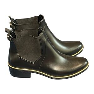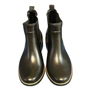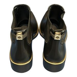 Kate Spade Sedgewick Rain Boots Black Gold Trim Rubber Water Resistant Trendy 9