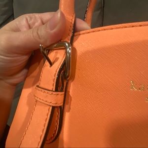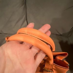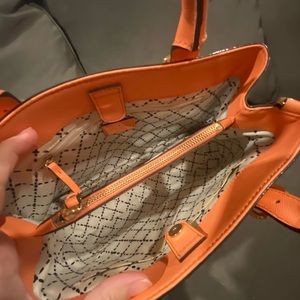 Like new. Has a small spot on outside. Tried to take a picture of it it’s not really noticeable but I wanted to take note of it. Color looks orange but it’s more of a peach color.