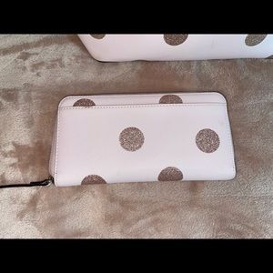 The glitter bag matches the glitter polka dots perfect and works well as a small interior clutch!