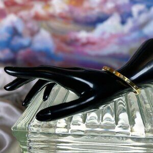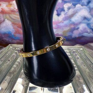 Crafted in a polished goldtone finish and studded with clear round crystals (including Kate Spade’s signature inside-set crystal detail), it delivers just the right balance of shine and sophistication. The secure hinged closure makes it easy to slip on and off while keeping it snug on the wrist.