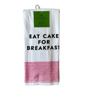Add a pop of playful charm to your kitchen with this brand-new set of 2 Kate Spade "Eat Cake for Breakfast" kitchen towels! Made from 100% cotton, these 17" x 28" towels are soft, absorbent, and machine washable—perfect for everyday use with a stylish twist. Featuring Kate Spade’s iconic quote, they’re ideal for gifting or elevating your own kitchen décor. A must-have for fans of chic, designer home essentials!