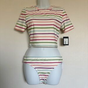 Kate Spade Short Sleeve Stripe 2 Piece Swimsuit in Multi Size Medium NEW Modest