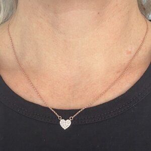 Kate Spade Signed CZ Pave Heart Mini Pendant Necklace in Rose Gold tone Metal