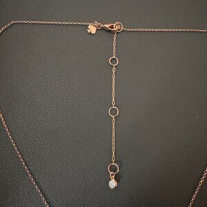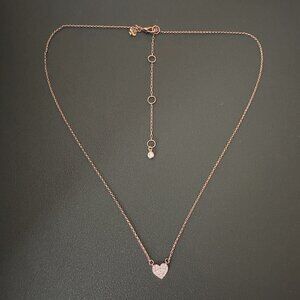 Kate Spade Signed CZ Pave Heart Mini Pendant Necklace in Rose Gold tone Metal. Great condition! 16" with additional extender chain.