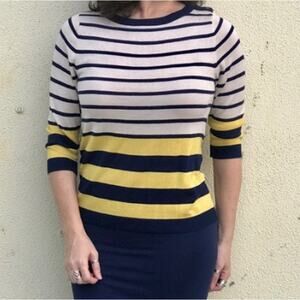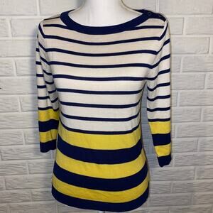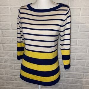 Kate Spade Silk Blend Boatneck Nautical Striped Sweater, Navy/Yellow, Size Small