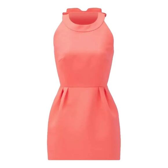 Turn heads in this stunning Kate Spade designer dress, crafted from luxurious silk in a vibrant pink hue. Featuring a chic halter neckline with a one-of-a-kind bow detail at the back, this dress combines elegance with playful charm. The open-back design adds a modern, flirty touch, while the tailored waist and midsize skirt create a flattering silhouette. Perfect for weddings, cocktail parties, or any special occasion.