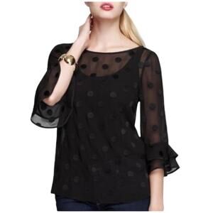 Kate Spade Silk Sheer Polka Dot Evi Flutter Sleeve Black Top - Great condition, see all pictures!