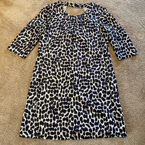 Kate Spade Silk Swing S/S Open Back Animal Print Cream Black Lined Dress Size 4