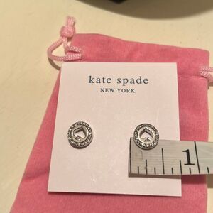 Kate Spade Silver Tone Rhinestone Halo Spade Stud Round Earrings New