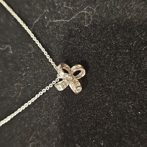 Kate Spade Silver-toned Paved Bow Pendant Necklace NWT