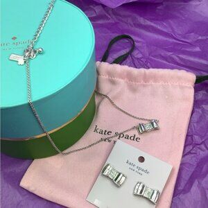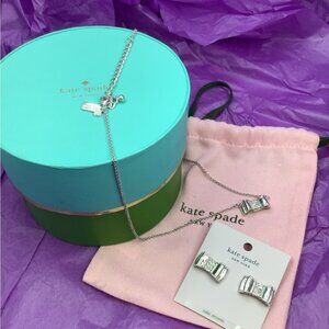 Kate Spade Silvery Bows Necklace and pierced Earrings