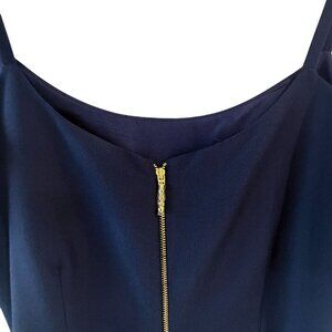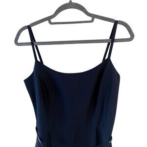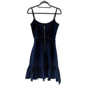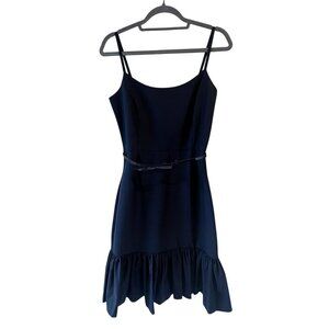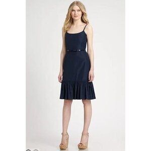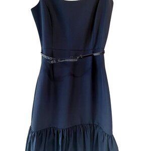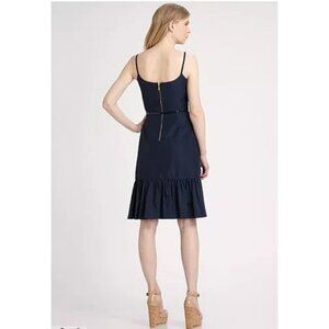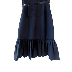 Kate Spade Size 4 Talitha Navy Blue Ruffle Hem Dress Slim Bow Belt Sleeveless