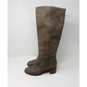Kate Spade Size 6 Gray Leather Block Heeled Tall Boots Almond Toe Side Zipper