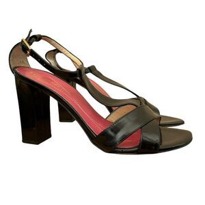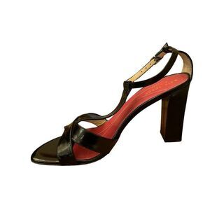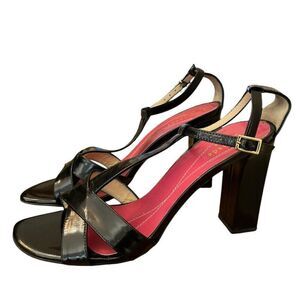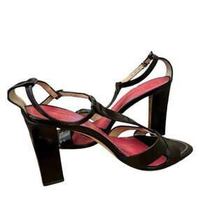 Kate Spade Size 6.5 Black Patent Leather Ankle Strap Heels Open Toe Italy