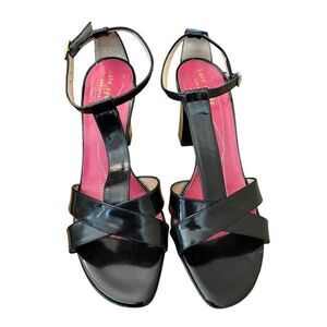 Kate Spade Size 6.5 Black Patent Leather Ankle Strap Heels Open Toe Block Pumps