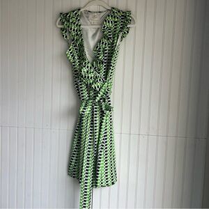 Kate Spade Size 8 Sleeveless Green Geometric Print 100% Silk Aubrey Wrap Dress