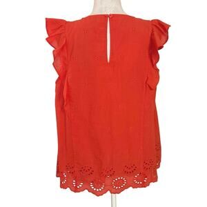 Kate Spade Size L Orange Eyelet Ruffle Top Blouse