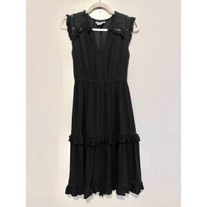 Kate Spade Size S Black Broome Street Swiss Dot Sleeveless Dress Lace Tiered