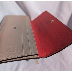 Kate Spade Slim Bifold Envelope Style Wallet Clutch Red/Orange? Beige Gold