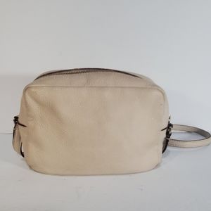 This is a practical purse made of soft leather, one exterior pocket, with a zipper for closure and the strap is adjustable.