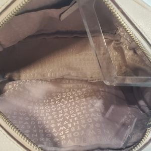 Its small but it will accommodate some makeup, a big phone, cash or a credit card.