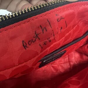 -Very good pre-owned condition: There is some writing on the inside, just under the zipper portion. It can not be seen unless you flip it up. Otherwise, the bag is clean with no stains, rips or signs of wear.