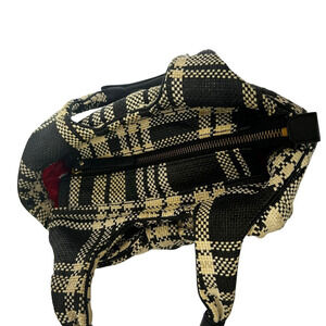 Kate Spade Small Black Cream Bow Plaid Purse Bag Double Handles