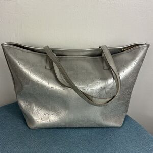 Kate Spade Small Harmony Metallic Tote Bag With Silver Hearts