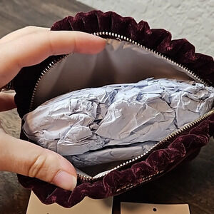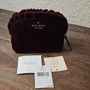 Kate Spade Small Ruffle Cosmetic- Briar Lane Quilted Velvet in Cherry Wood