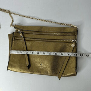 Kate Spade Social Butterfly Skyler Crossbody Clutch Antique Gold Leather zip top