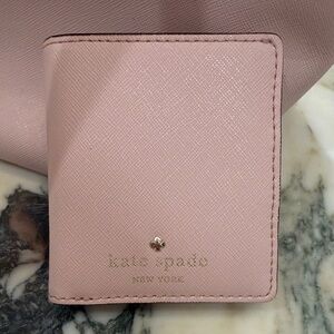 Chic tote bag with matching wallet. Soft pink hue. Ideal for daily use.