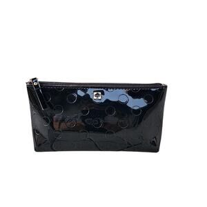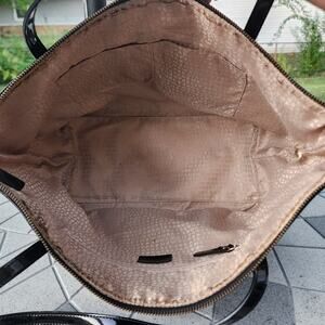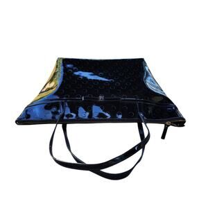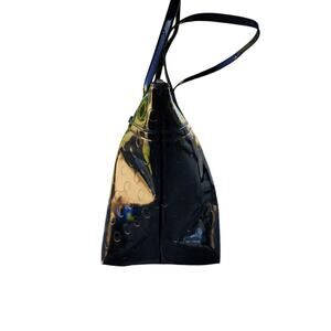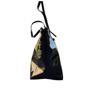 Preowned: Stylish, black "Sophie Camellia Street" PVC & patent leather spacious tote bag & matching cosmetic pouch set