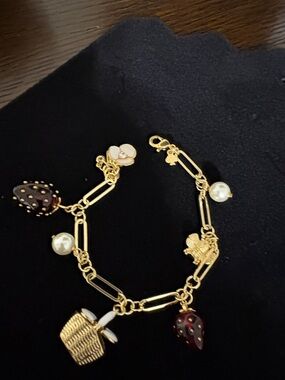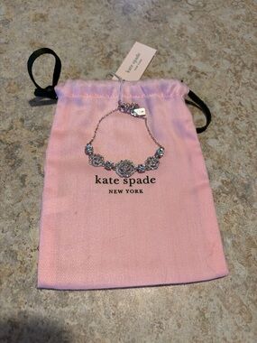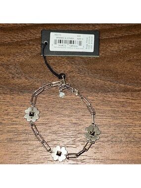 Delicate gold-tone chain with white enamel floral charms. Sparkling crystal accents add shine. Feminine and versatile for day or night. New with tags