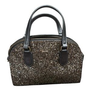 Chic dome bag with shimmering surface. Black handles and trim. Ideal for stylish outings.