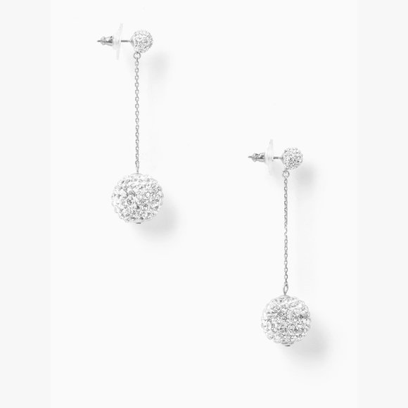 Clay and clear stones. Sparkly. Top ball 0.25", bottom ball 0.5". 2 1/4" drop. Plated metal. Titanium posts.
