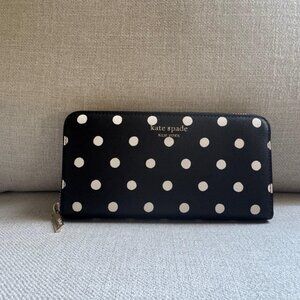 Kate Spade Spencer Cabana Dot Zip-Around Continental Wallet – Like New 🖤✨