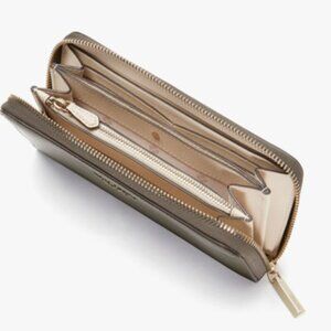 The spencer continental wallet is done in Kate's new saffiano leather. its soft texture is nice to touch and durable against drops and scratches, so it'll keep its sleek, luxe look..